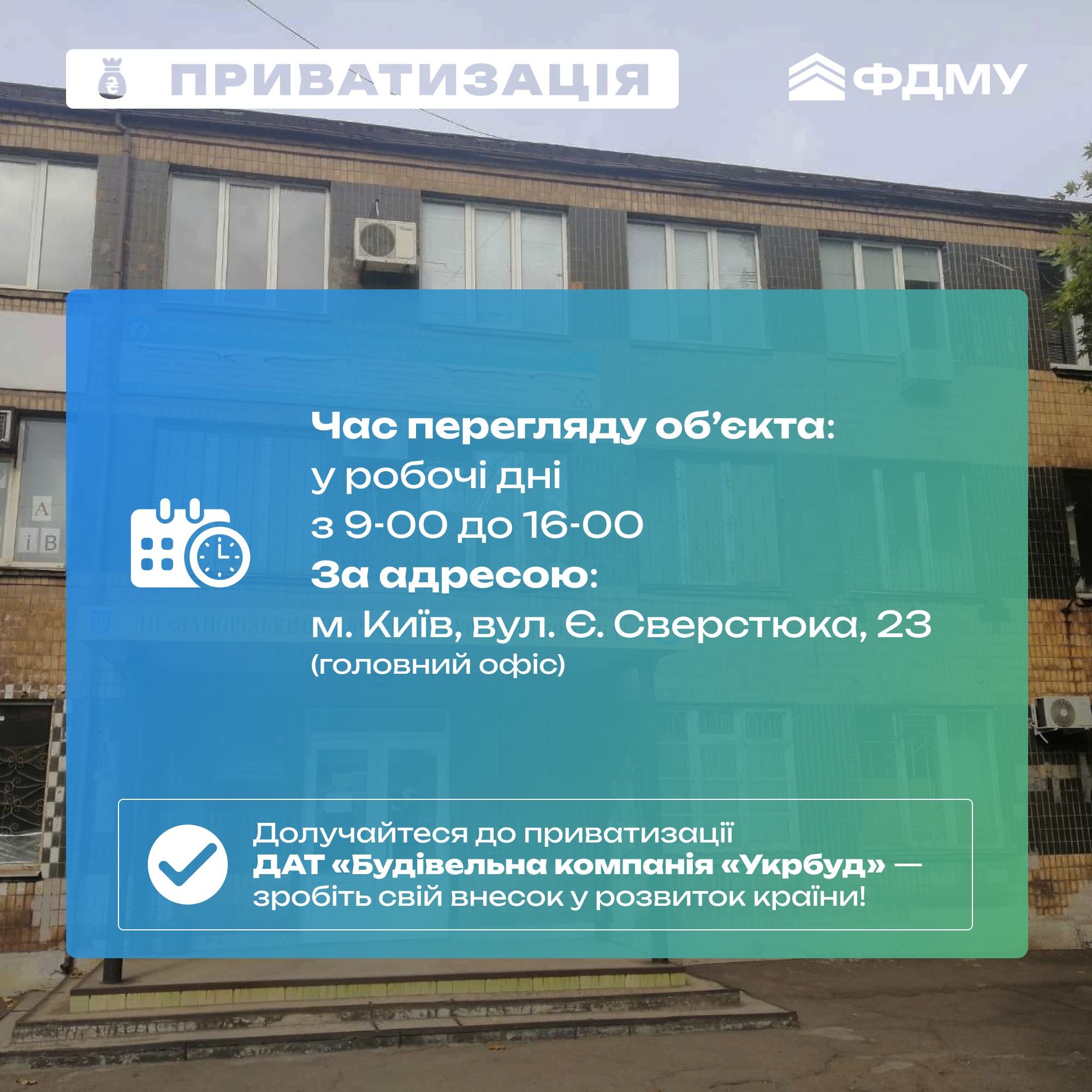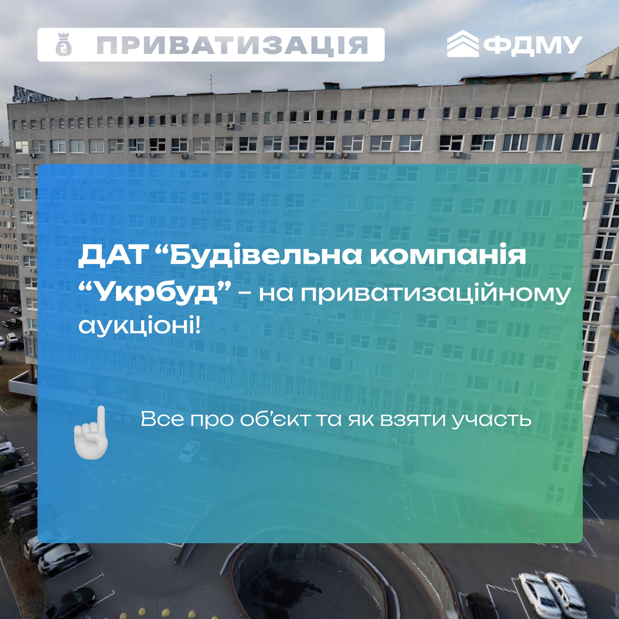 Фонд державного майна України оголосив аукціон із приватизації 100% державного акціонерного товариства "Будівельна компанія "Укрбуд".