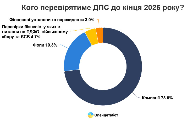 79% перевірок припадають на компанії (3881 підприємство) і 21% на ФОПів (1027 бізнесів). Найбільше перевірок заплановано на грудень: податківці проведуть 482 перевірки.