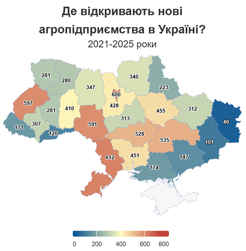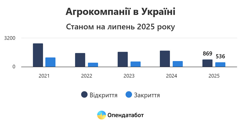За період з 2021 року в Україні було відкрито 8 644 аграрних підприємств, водночас закрилось лише 3 416 компаній.