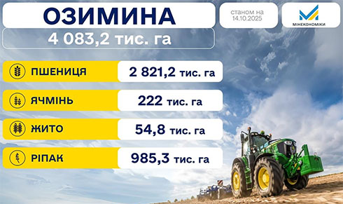 «Станом на 14 жовтня 2025 року українські аграрії засіяли 4 083,2 тис. га озимих культур. Це 62% від прогнозованих площ», - йдеться у повідомленні.