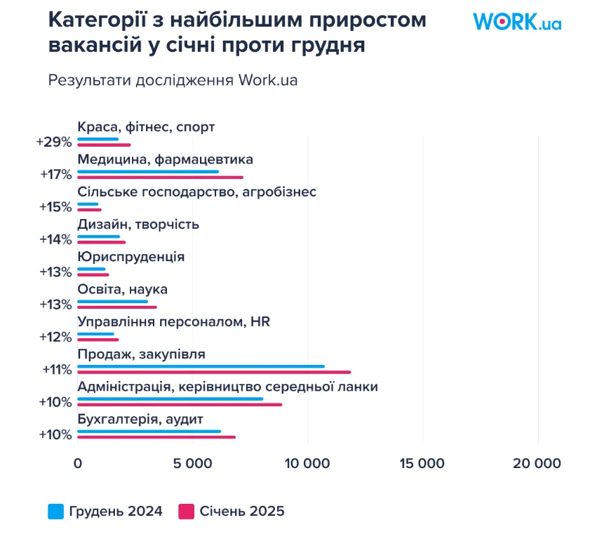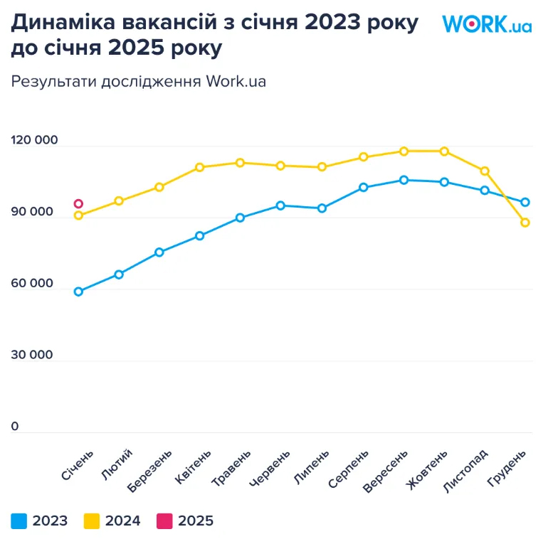 Новий 2025 рік на ринку праці розпочався динамічно: кількість вакансій у січні зросла до 94 985, що на 7% більше за показник грудня минулого року. Про це йдеться в огляді платформи працевлаштування Work.ua.