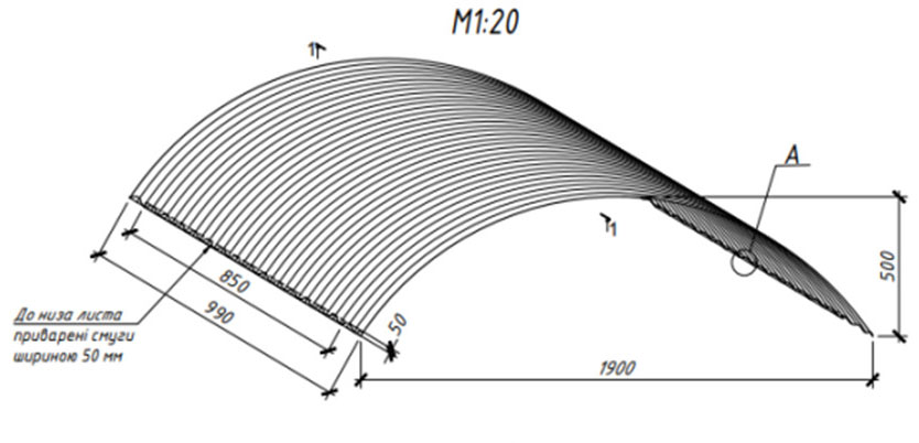 Арочні елементи мають бути виготовлені з нефарбованої хвилястої гофрованої сталі марки Ст3пс або Ст3сп, товщиною не менше 2 мм. Розміри: ширина арки в основі - не менше 1900 мм, висота - не менше 500 мм, довжина - не менше 990 мм. Конструкція має передбачати можливість послідовного з'єднання між собою.