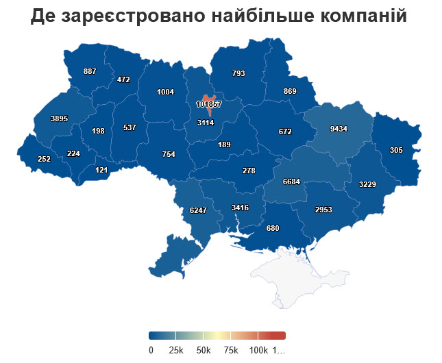 Найбільше компаній (2 367) зареєстровано у столиці, за адресою вулиця Мельникова, будинок 12. Згідно з мапою, це звичайна жила п'ятиповерхівка. Ця адреса є лідером за компаніями ще з 2018 року.
