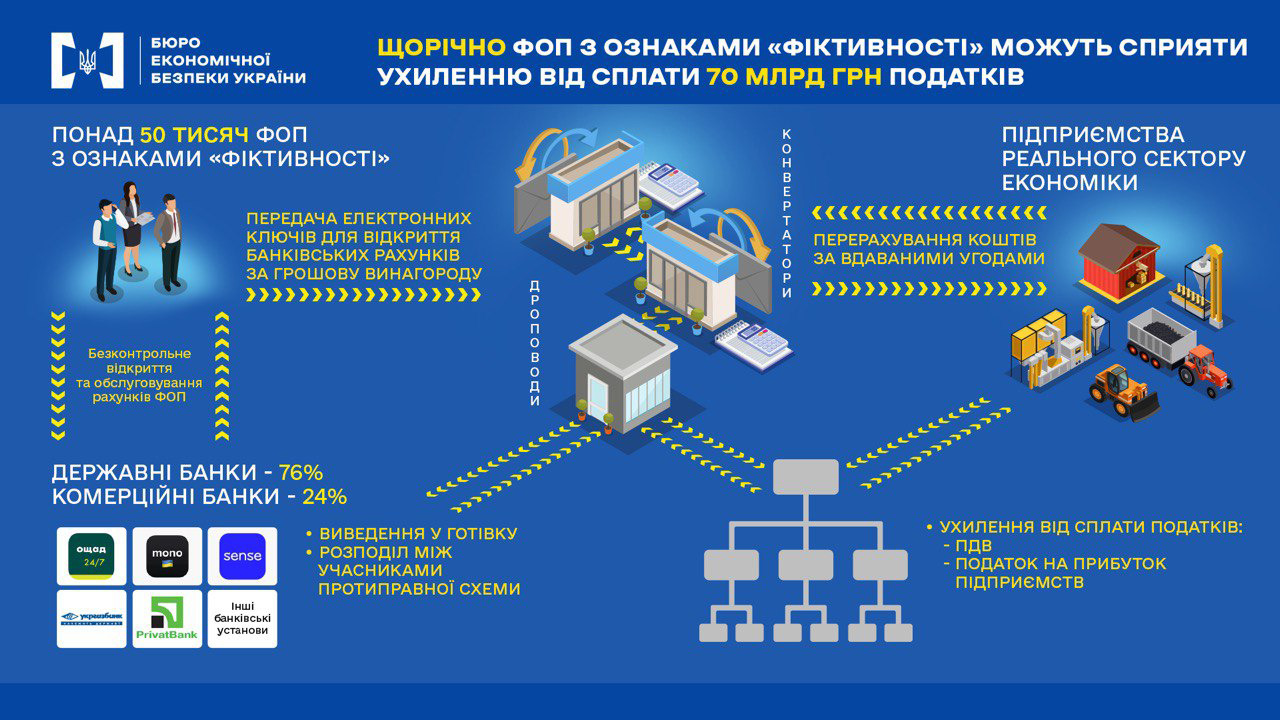 На сьогодні в Україні існує понад 50 тис. фізичних осіб-підприємців, що залучені до протиправних схем.