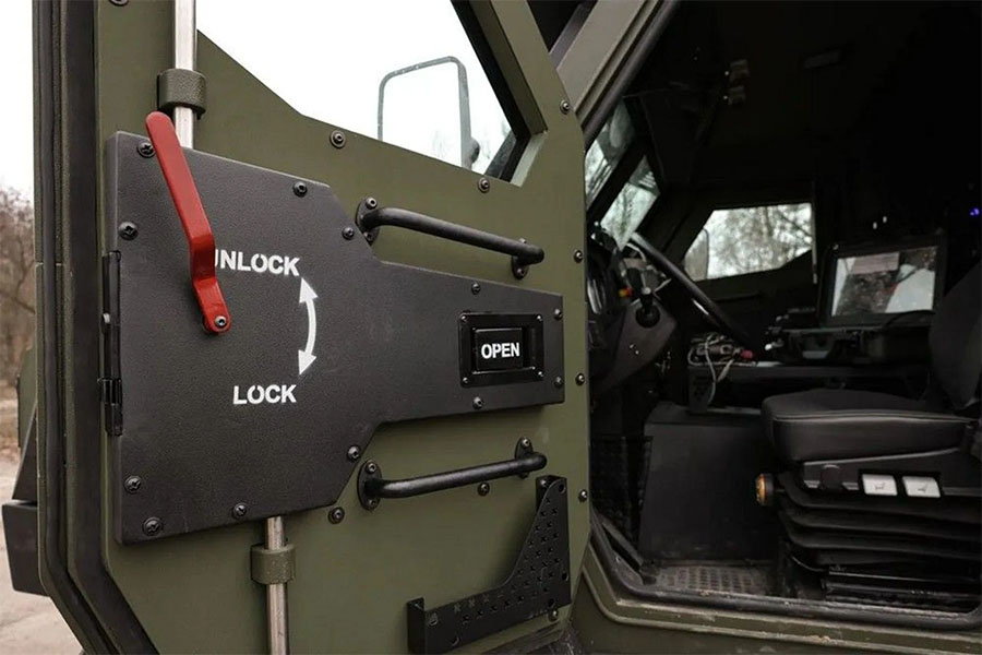 "Для підвищення прохідності та маневреності автомобіля в складних умовах, з урахуванням маси броньованої капсули, сконструйовано незалежну підвіску на подвійних поперечних важелях, привод, центральну систему підкачки шин та інші елементи ходової системи", - йдеться на сайті УкрАрмоТех.