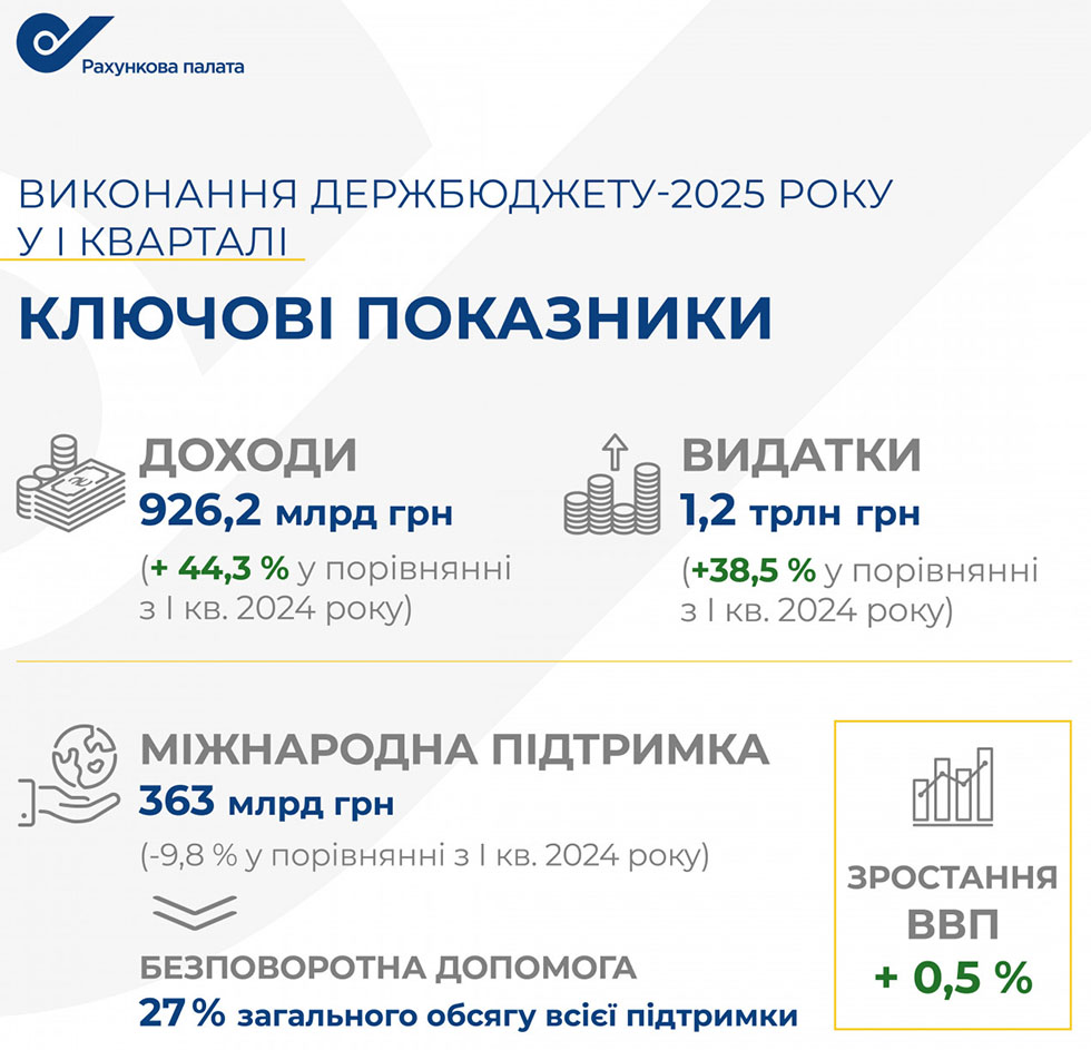 За підсумками аналізу виконання закону про державний бюджет України на 2025 рік у першому кварталі Рахункова палата виявила ризики, які можуть негативно вплинути на економічні показники.