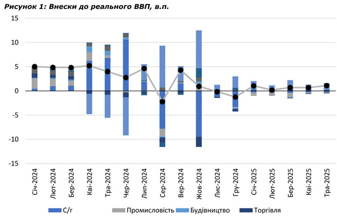 Реальний валовий внутрішній продукт (ВВП) України у травні 2025 року зріс на 1,1% порівняно з аналогічним місяцем 2024 року, повідомляється у Місячному економічному моніторингу Інституту економічних досліджень і політичних консультацій (ІЕД).