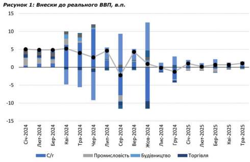 Крім того, у травні компанії стикалися з меншими проблемами щодо доступу до електроенергії. Так, за оцінкою ІЕД, реальна ВДВ в електроенергії зросла на 3% до попереднього року у квітні та 4,8% в травні. Падіння в добувній промисловості сповільнилося до 10,4% (порівняно з 2024 роком) у травні через певне відновлення видобутку газу та зростання добуваннябудівельної сировини.