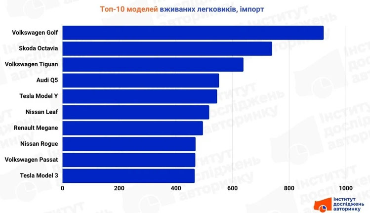 Згідно з дослідженням, серед моделей першість у Volkswagen Golf, якому допомагає електрична версія e-Golf. Друге місце у Skoda Octavia, третє - у Volkswagen Tiguan якому донедавна серйозну конкуренцію складала Audi Q5, проте тепер цей кросовер скоріше конкурує з електричним Tesla Model Y.