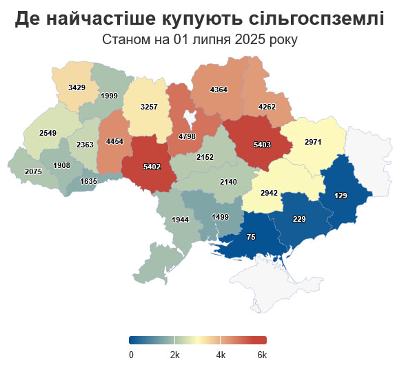 Цьогоріч найактивніше купують землі на Полтавщині (5,4 тисячі угод), Вінниччині (5,4 тис.) та Київщині (4,7 тисячі), повідомляють експерти.