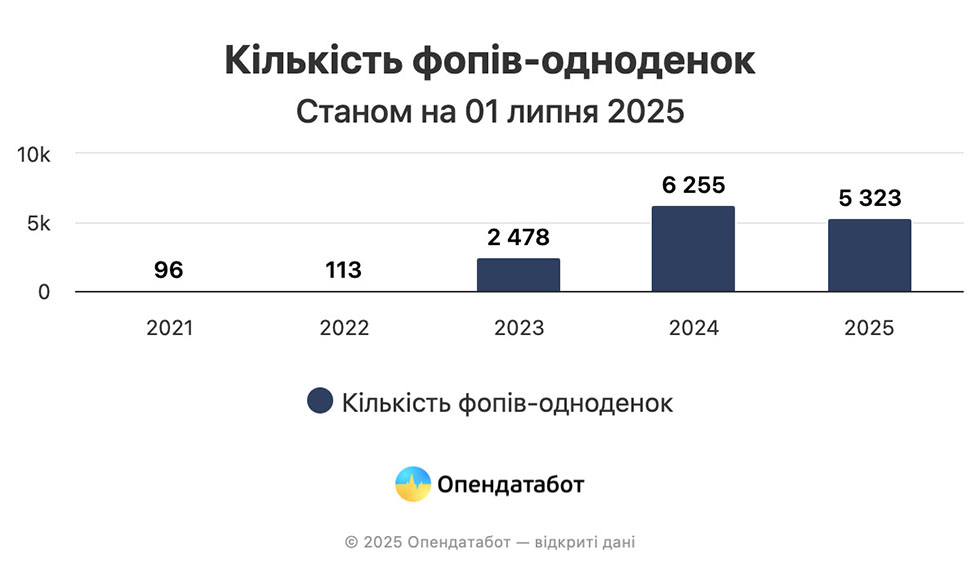 За перші шість місяців 2025 року в Україні припинили роботу 157,6 тис. фізичних осіб-підприємців - це на 20 тисяч більше, ніж зареєстровано нових.