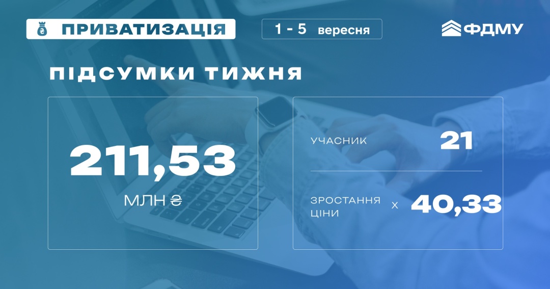 Фонд державного майна на приватизаційних аукціонах 1 - 5 вересня 2025 року залучив 211,5 млн гривень.