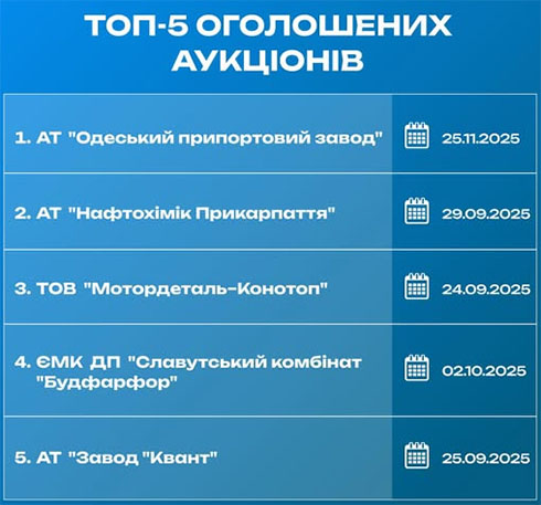 Там назвали топ-5 оголошених аукціонів, зокрема: