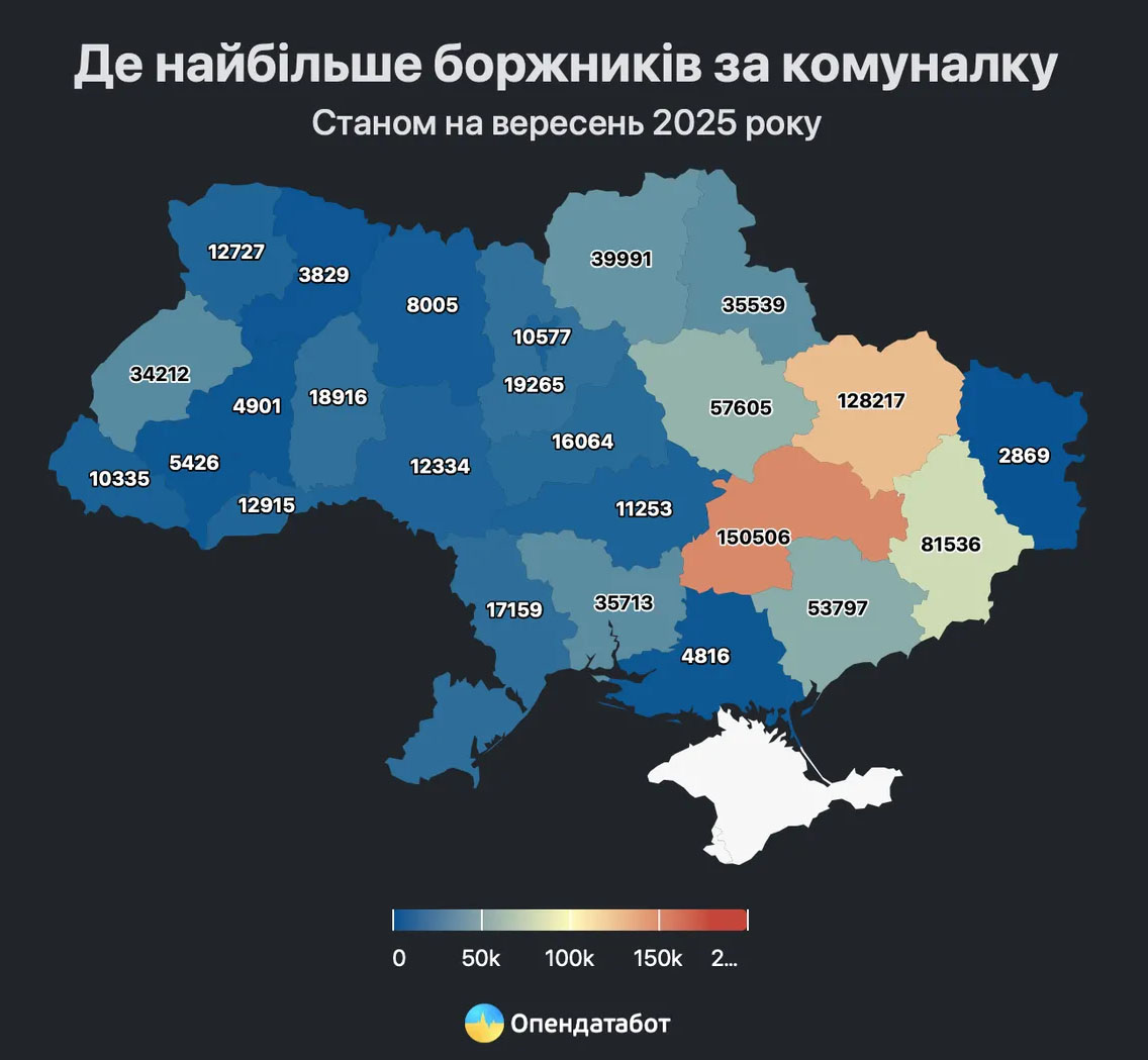 Станом на середину вересня 2025 року у Єдиному реєстрі боржників зафіксовано рекордні 788 507 боргів за комунальні послуги, що на 13% більше, ніж у липні 2024 року. Про це пише Опендатабот.