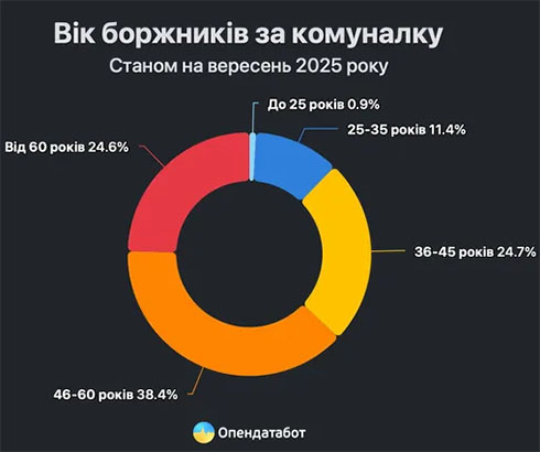Найбільше проблем з оплатою мають люди середнього віку. У групі 46-60 років відкрито понад 302 800 проваджень (38%), у групі 36-45 років - 194 700 (25%). Ще майже стільки ж боргів у людей, старших за 60 років.