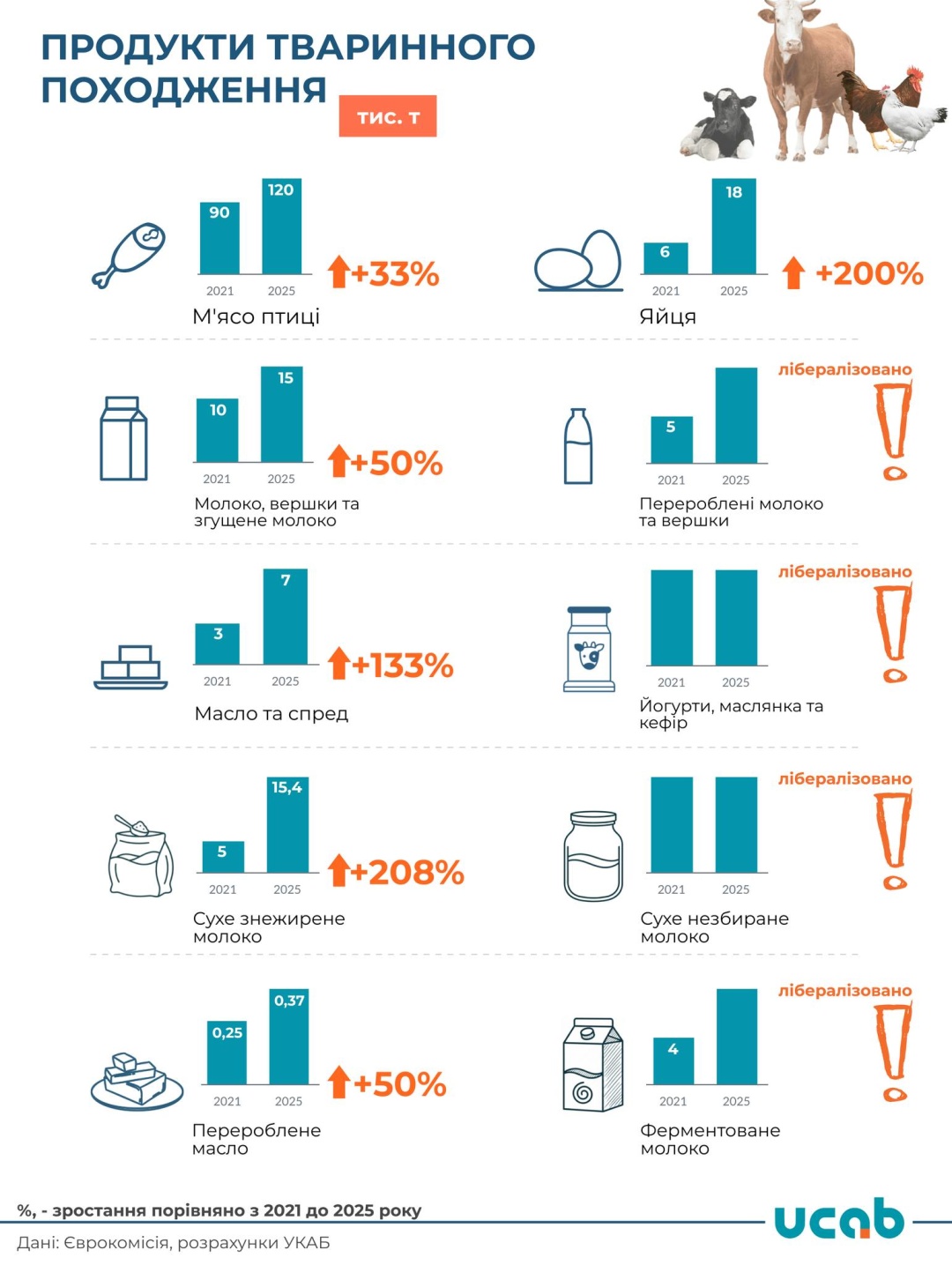 * яйця: обсяг квоти зріс на 200% - з 6 тис. до 18 тис. т;