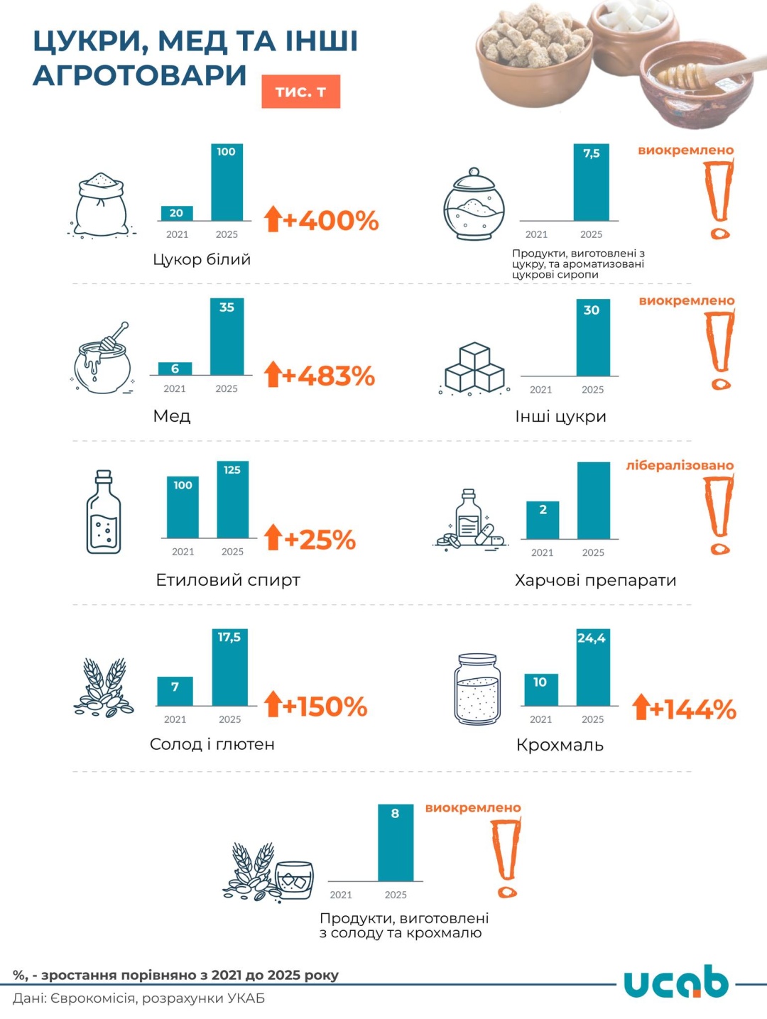 * цукор: квота збільшилася на 400% - з 20 тис. до 100 тис. т;