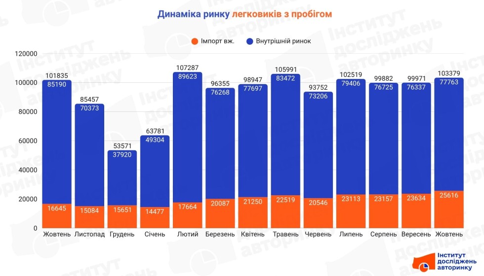 Привезених із-за кордону вживаних легкових машин у жовтні 2025 року на першу реєстрацію було подано 25,6 тисячі. Цей показник більший на 8,4% відносно результатів вересня поточного року, та на 53,9% більший у порівнянні з аналогічним періодом 2024 року.