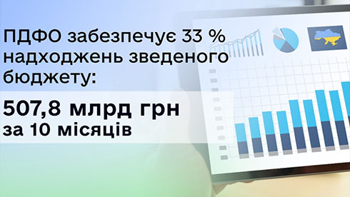 ПДФО забезпечує 33 % надходжень зведеного бюджету: 507,8 млрд грн за 10 місяців