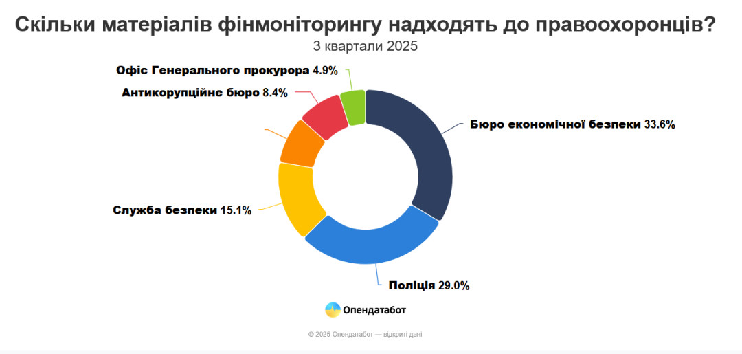На запит Опендатабота у Держфінмоніторингу додали, що цьогоріч лише за жовтень до правоохоронних органів було направлено 208 матеріалів на майже 80 млрд грн - це вже більше, ніж за весь минулий рік.
