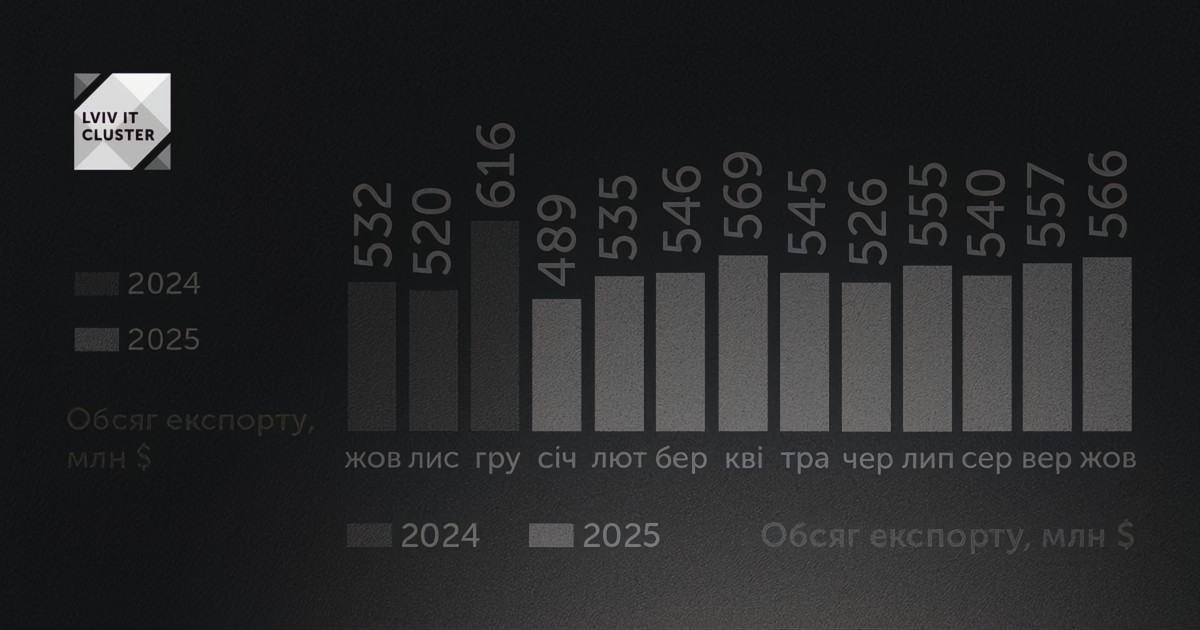 Водночас це на 6,4% (на $34 мільйони) більше, порівняно з жовтнем 2024 року, повідомляє "Львівський ІТ Кластер" із посиланням на дані Національного банку (НБУ).