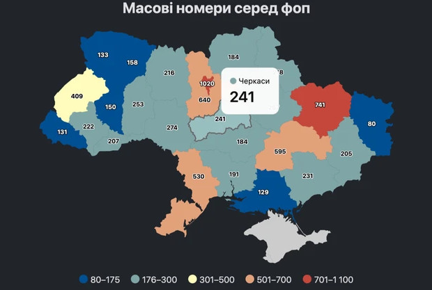 Зазначається, що 3 380 номерів - масові як для фопів, так і для компаній. Це номери, які "обслуговують" щонайменше 5 компаній і 5 ФОПів одночасно.