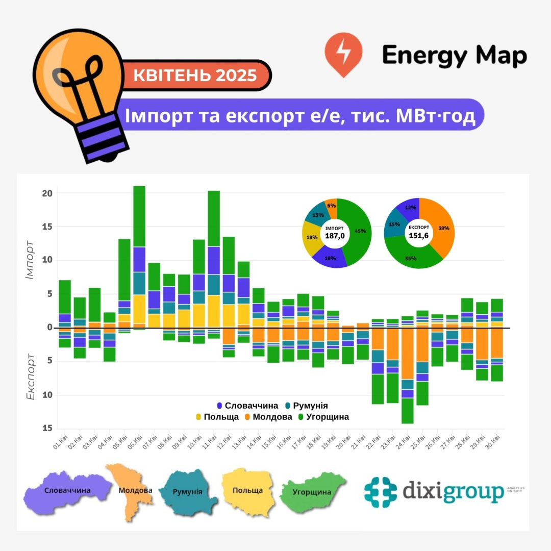 Україна у квітні зменшила імпорт електрики на 31% - DiXi Group