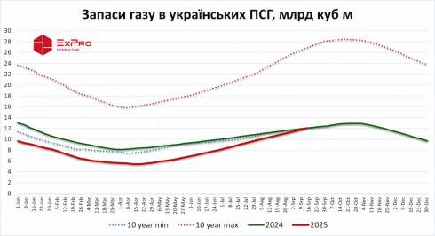 З початку сезону закачування до українських ПСГ закачано майже 6,68 млрд куб м газу, в 1,67 разів більше, ніж у 2024 року. Також до сховищ впродовж 2025 року закачано більше газу, ніж зберігалося в ПСГ на кінець опалювального сезону.