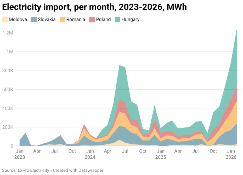 Видання зазначило, що попри політичні прогнози, імпорт електроенергії з Угорщини та Словаччини у лютому лише зріс до рекордних місячних показників.