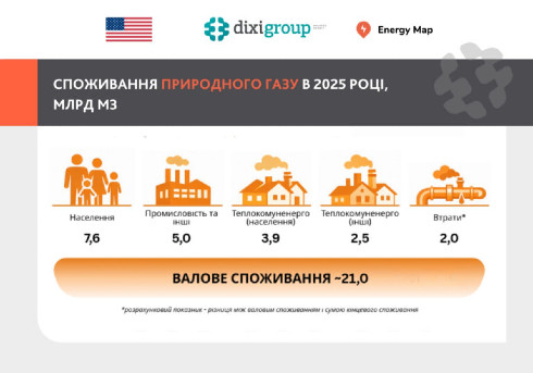 "У 2025 році валове споживання природного газу в Україні становило 21,0 мільярда кубометрів газу. Найбільшим споживачем є населення, на яке припадають 7,6 мільярда кубометрів, або 36% загального обсягу", - йдеться у повідомленні.