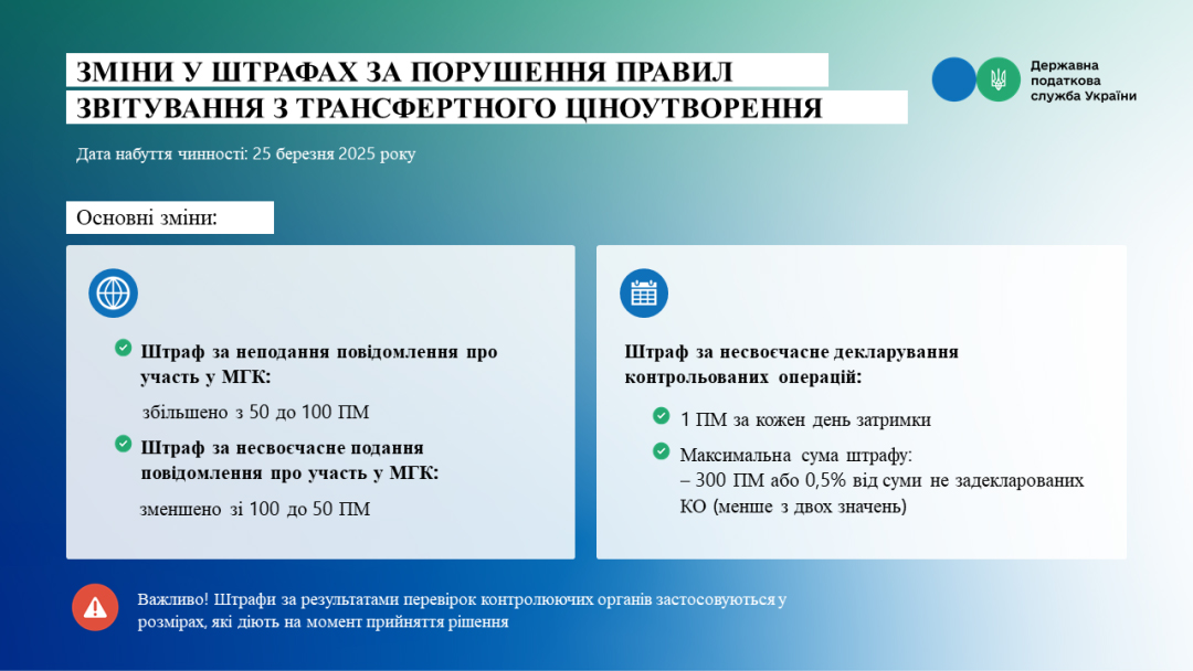 Із 25 березня 2025 року в Україні змінюються розміри штрафів за порушення термінів подання звітності з трансфертного ціноутворення.