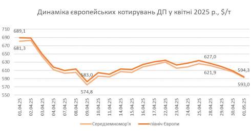 Зазначимо, що Orlen Lietuva переглянув ціни на 5-11 травня з урахуванням падіння нафти, знизивши їх на $21/т, до $638-651/т.