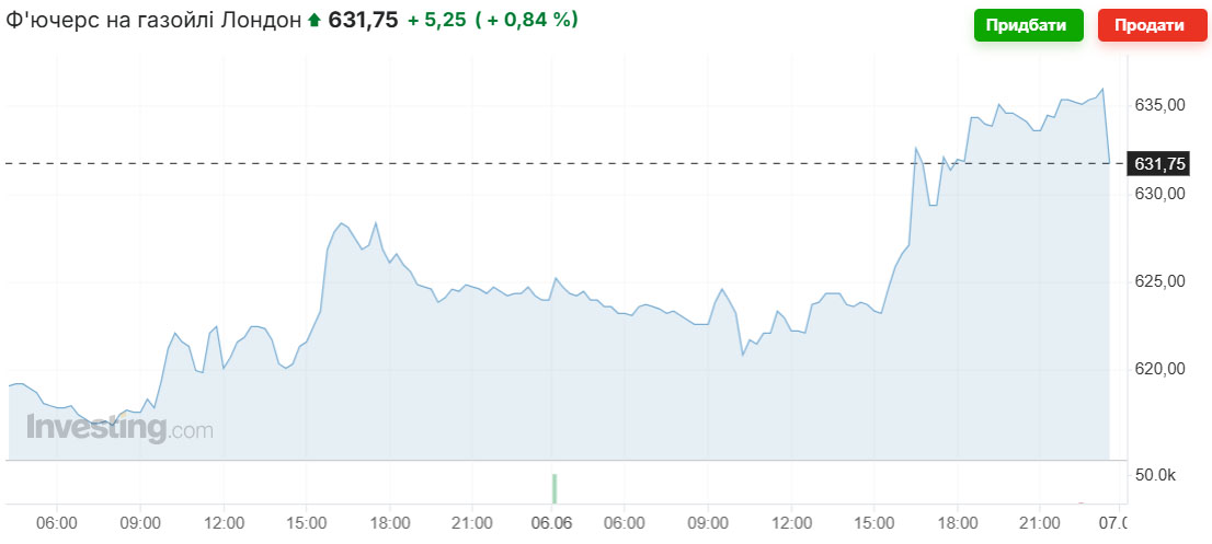 Зростання ф'ючерсів на газойль на Лондонській біржі 6 червня на $5,25/т, до $632/т, може стимулювати ціни до зростання на початку тижня. Втім, зі слів представників паливних компаній, перенасичення ринку сприяло зниженню волатильності фактичних цін. Тим паче у сезон низьких продажів.