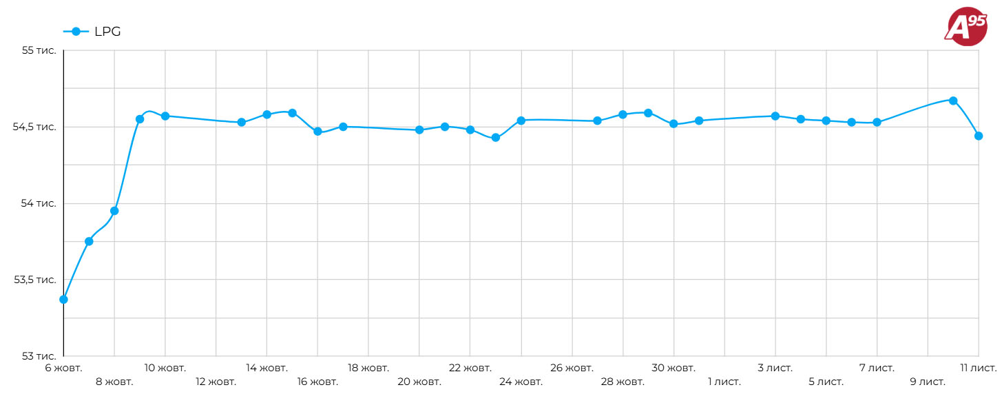 Згідно з моніторингом Консалтингової групи «А-95», за тиждень з 4 по 11 листопада середня ціна на газ просіла на 110 грн/т, до 54 440 грн/т.