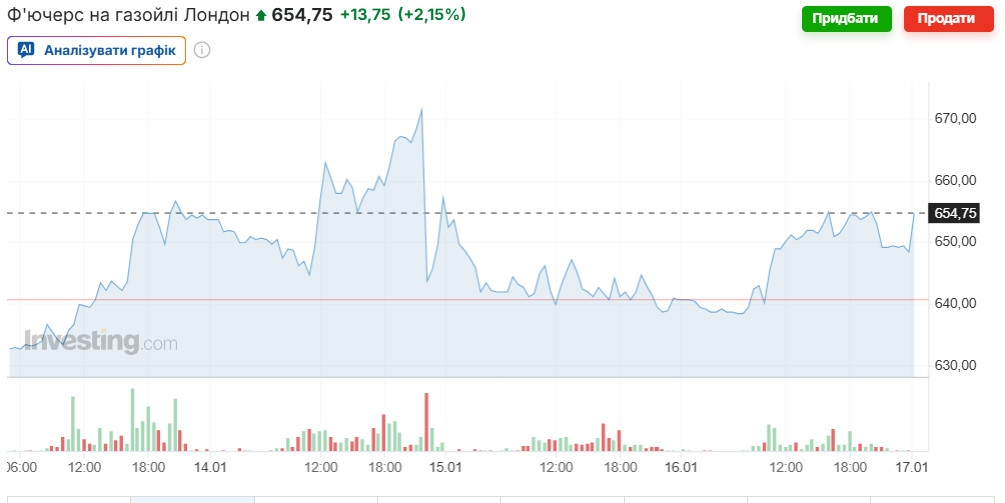січня до $647/т. Згідно з даними Investing, торги ф'ючерсами на газойль