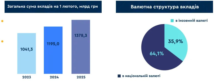 Загальна сума вкладів становить 1,37 трлн грн на 1 лютого 2025 року.