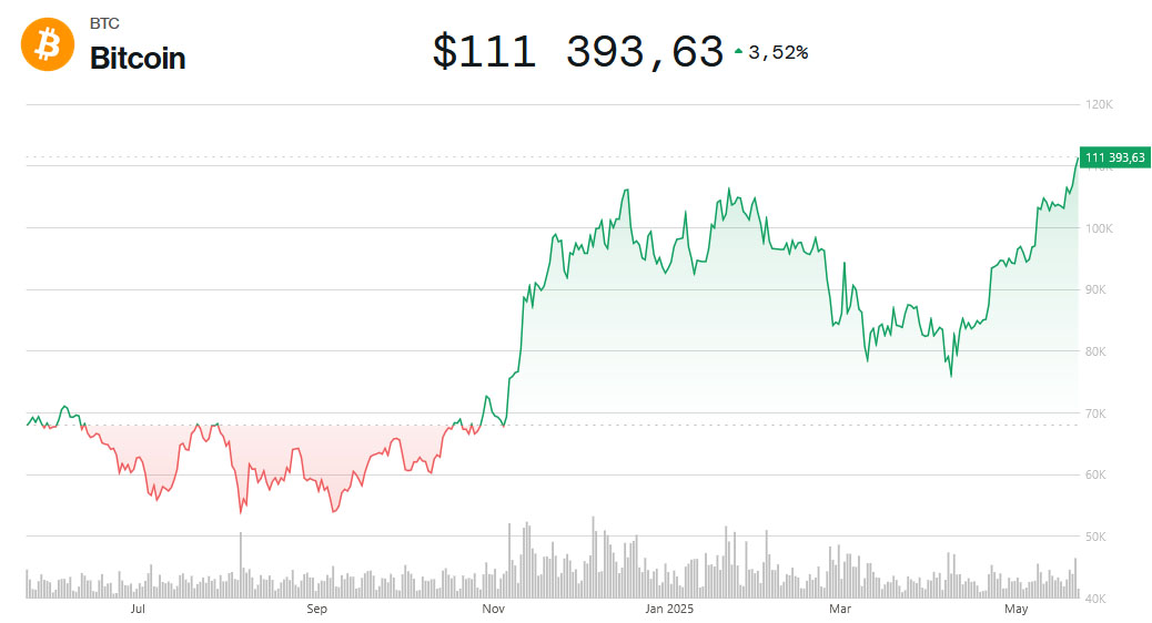 За даними видання, у четвер, 22 травня, під час ранкових торгів в Азії, Bitcoin піднявся на 2,2% і досяг 110 707 доларів, після чого частково скоригувався.