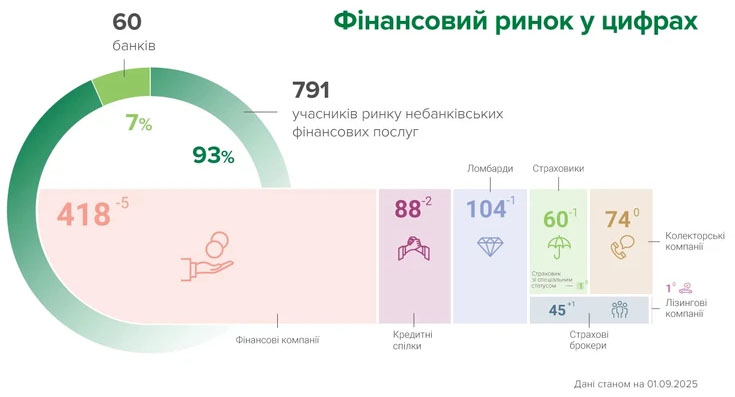 Станом на 1 вересня на ринку небанківських фінансових послуг працювали: