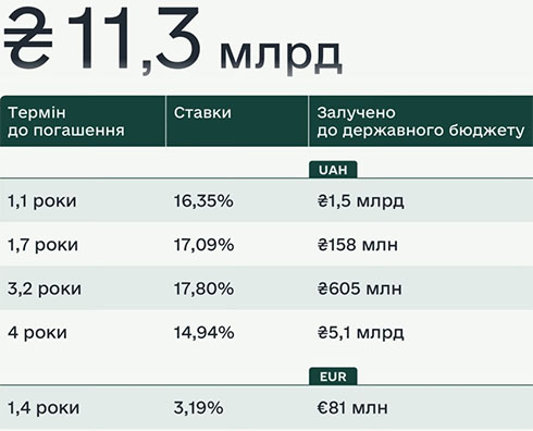 Щодо облігацій в євро, то за пропозиції на EUR100 млн попит на них склав EUR93,6 млн, що є найнижчим показником цього року. Мінфін відмовився задовольнити одну з 41 заявки на EUR13,35 млн та залучив EUR80,61 млн.