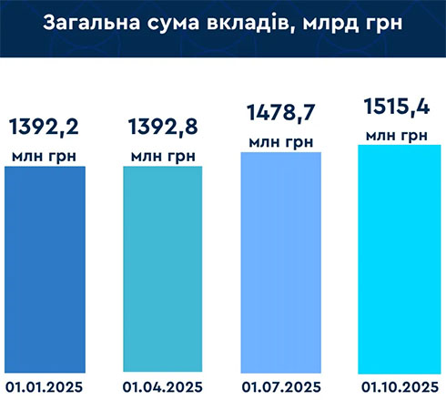 Загальна сума вкладів фізичних осіб у банках України вперше перевищила позначку 1,5 трильйона гривень. Станом на 1 жовтня цього року показник досяг 1 515,4 мільярда гривень, повідомив у четвер Фонд гарантування вкладів фізичних осіб.