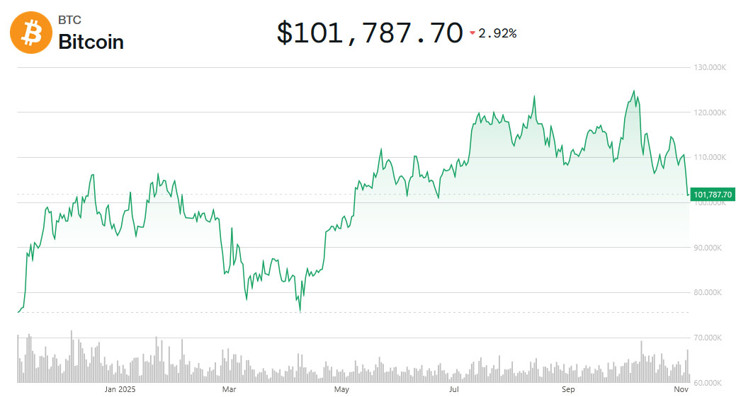 Згідно з даними криптобіржі Binance, біткойн тимчасово подешевшав до 99 908 доларів, після чого відновився до 101 400 доларів. Це перше зниження нижче психологічної позначки з 23 червня 2025 року.