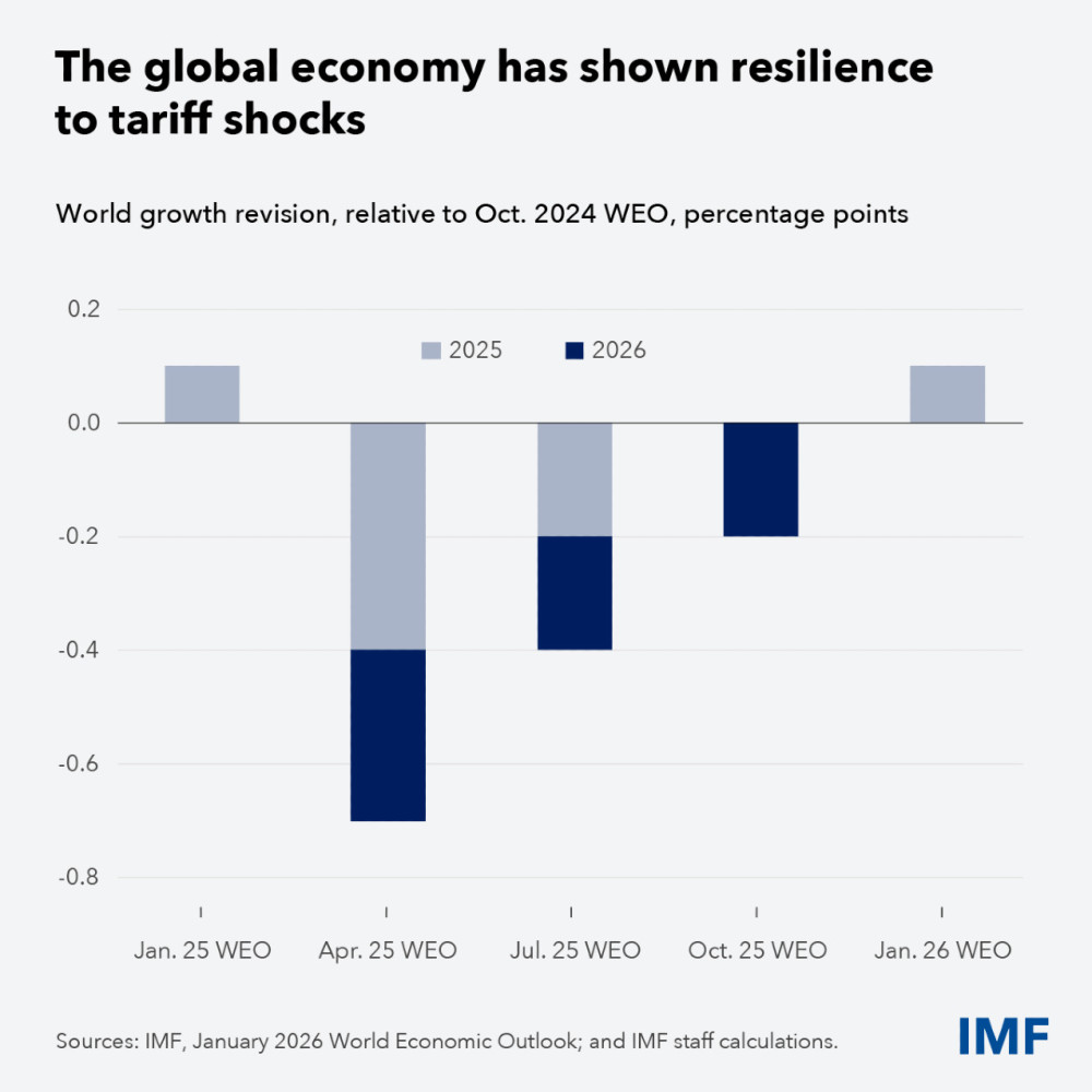 Серед факторів, які сприяли покращенню прогнозу, МВФ називає інвестиції в технології, фіскальну та монетарну підтримку, сприятливі фінансові умови та адаптивність приватного сектору, що компенсують зміни в торговельній політиці.