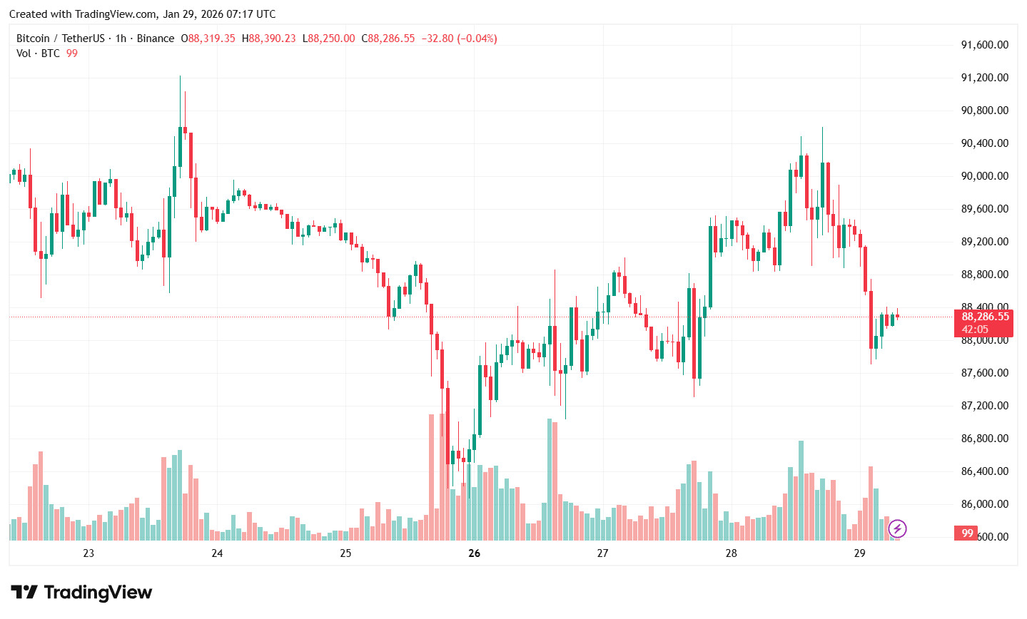 Біткоїн і ринок загалом у моменті відреагували падінням. Курс першої криптовалюти протестував рівень нижче $88 000, після чого відбувся невеликий відскок.