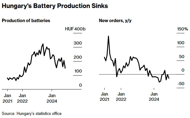 У результаті економіка Угорщини значною мірою стала залежати від реалізації акумуляторів для електромобілів китайських заводів, розташованих в країні. Послаблення інтересу до електромобілів у Європі призвело до зменшення обсягів виробництва на цих підприємствах, що негативно позначилося на ВВП Угорщини у першому півріччі 2024 року (падіння на 0,2%).
