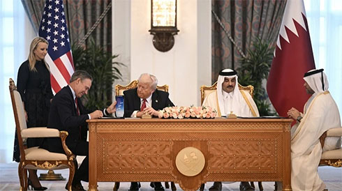 Зазначається, що церемонія відбулася в Досі за участі президента США та еміра Катару Таміма бін Хамада Аль Тані.