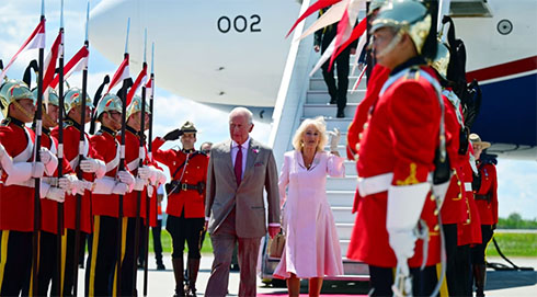 В аеропорту Оттави короля зустрічали канадські урядовці, лідери корінних народів, школярі та армійський полк, відомий як Королівські канадські драгуни.