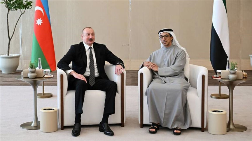 Як йдеться в повідомленні адміністрації президентства Азербайджану, під час зустрічі Алієва з Аль Нахайяном було наголошено, що відносини між Азербайджаном та ОАЕ, засновані на дружбі та братерстві, перебувають на рівні стратегічного партнерства, політичні відносини досягли високого рівня, а торговельно-економічна співпраця розвивається стабільно.