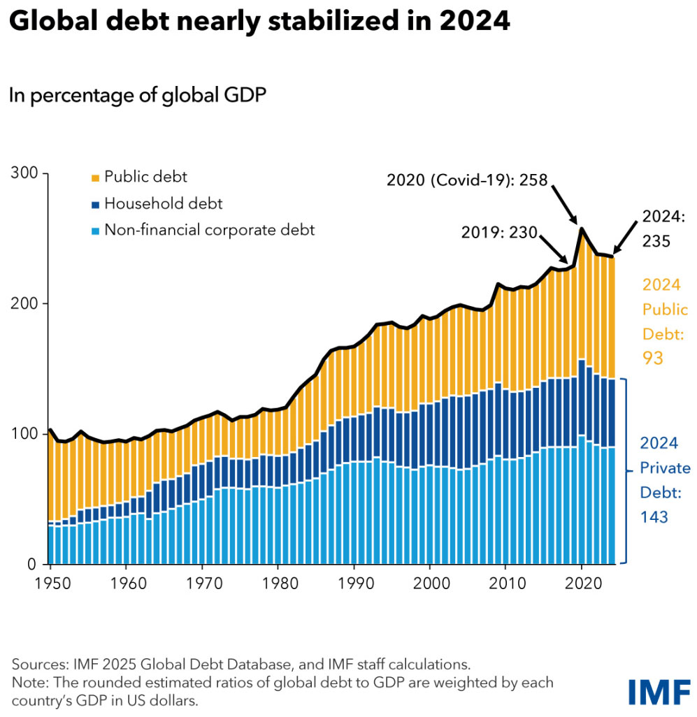 Загальний борг світу трішки перевищує 235% світового валового внутрішнього продукту.