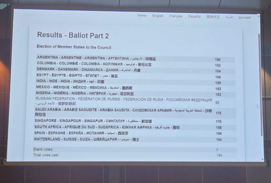 Як випливає з фото результатів голосування, опублікованого міністром авіації Нігерії Фестусом Кейямо, Росія отримала 62 голоси зі 185 можливих - тобто значно менш як половину. Таким чином, Росія не увійшла до числа 36 країн, які будуть представлені у раді ІСАО в найближчі три роки.