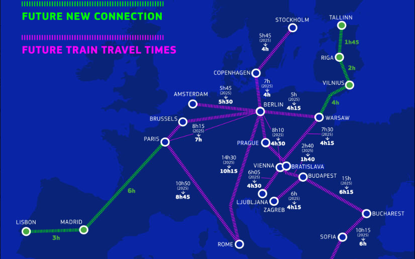 Проєкт, що ґрунтується на плані Транс'європейської транспортної мережі TEN-T, ставить за мету удвічі скоротити час поїздок на ключових напрямках, порівняно з сьогоденням. Окремий акцент зроблять на розвитку нічних поїздів, які на далеких маршрутах мають особливі переваги з точки зору економії часу.